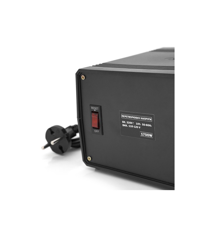 Преобразователь напряжения понижающий используется для понижения сетевого напряжения 220В до напряжения 110В для рабрты электротехники, ориентированой на страны с соответствующим стандартом электросетей.