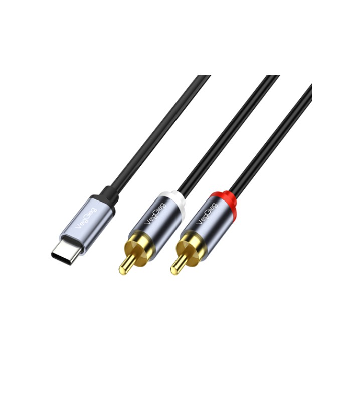 Кабель VEGGIEG V-A621 TypeC &gt, 2хRCA (папа), GOLD Jack, круглый, Gray, 1.5 м, Пакет