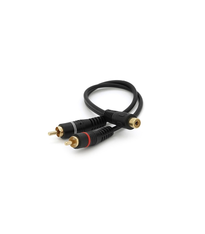Кабель RCA (мама) &gt, 2хRCA (папа), CU, круглый, Black, 0,2м, (Пакет) Q250
