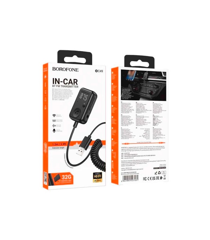 FM-модулятор Borofone BC49 предназначен для передачи звука с портативного устройства на автомобильную аудиосистему. Модулятор имеет черный цвет и поставляется в коробке.