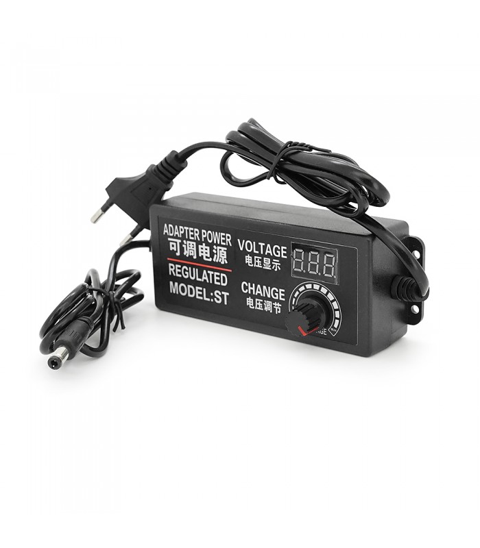 Импульсный адаптер питания с регулировкой напряжения 3В-24В 3А штекер 5.5/2.5 длина, LED, Black