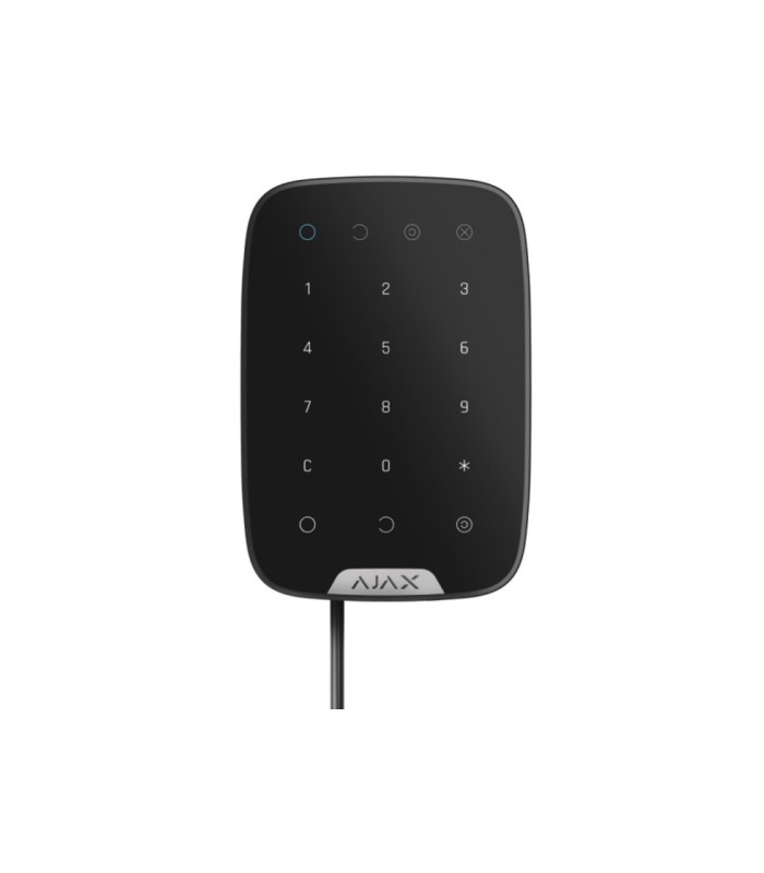 Проводная сенсорная клавиатура KeyPad Fibra — устройство управления системой безопасности Ajax. Устройство обменивается информацией с контрольной панелью по защищённому протоколу Fibra, а дальность проводной связи составляет до 2 километров при подключении через витую пару U/UTP cat.5.