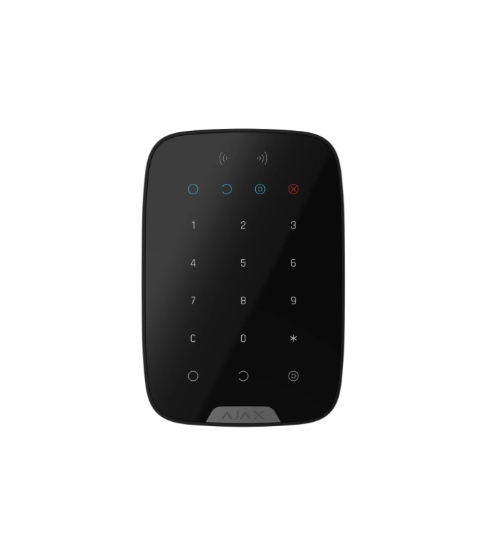 KeyPad S Plus Jeweller – это беспроводная сенсорная клавиатура. Позволяет управлять системой Ajax с помощью зашифрованных бесконтактных карт и брелоков. и принуждения. Светодиодный индикатор отображает текущий режим безопасности.
