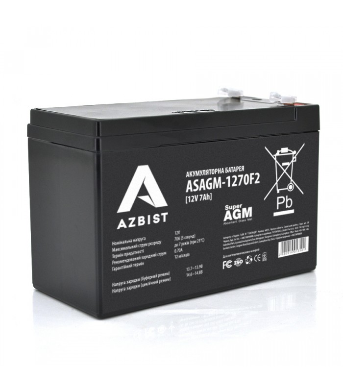 Акумулятор AZBIST Super AGM ASAGM-1270F2, Black Case, 12V 7.0Ah (151 х 65 х 94 (100)) Q10 Новинка