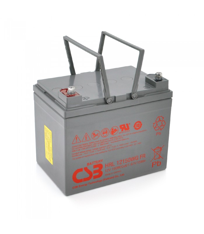 HRL12150WFR - это необслуживаемая, герметизированная, свинцово-кислотная аккумуляторная батарея с увеличенным до 10 лет сроком службы в буферном режиме. Разработана для высокой эффективности при разряде большими токами в источниках бесперебойного питания и других системах, где критичным является возможность поддерживать высокий ток. Как и все батареи CSB, она перезаряжаемая, высокоэффективная и не требующая обслуживания