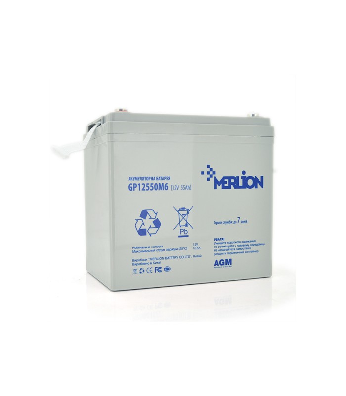 Аккумуляторная батарея MERLION AGM GP12550M6 - надёжный электрический компаньон для ваших устройств. Обладает герметичным прочным корпусом, который прослужит долго и счастливо.