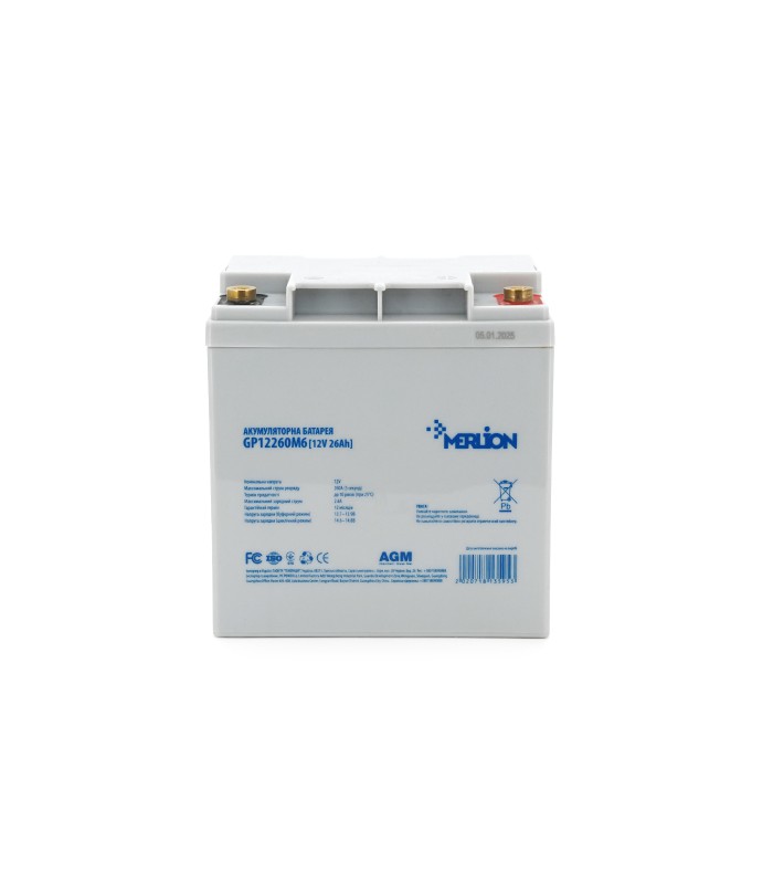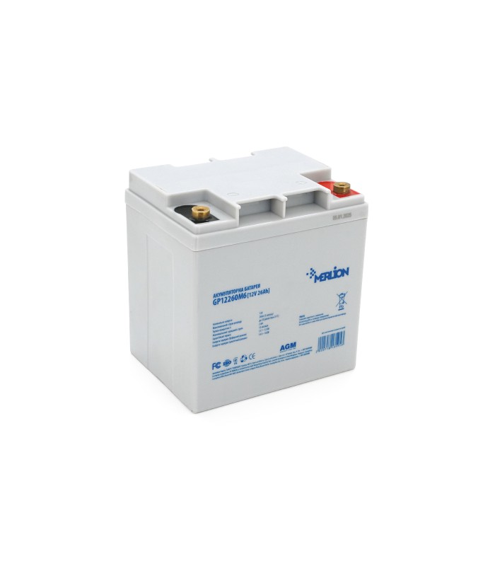 Аккумуляторная батарея MERLION AGM GP12260M5 - надёжный электрический компаньон для ваших устройств. Обладает герметичным прочным корпусом, который прослужит долго и счастливо.