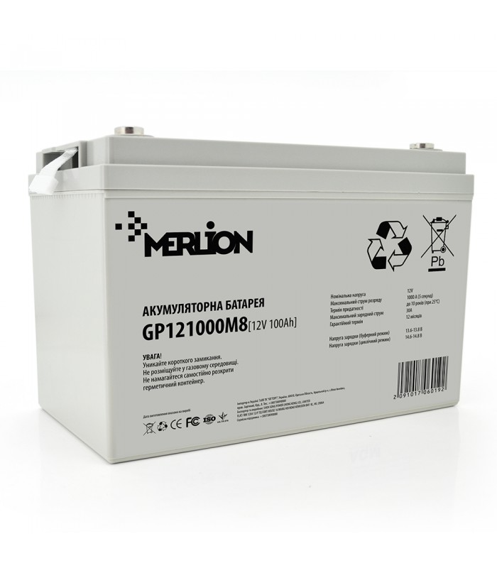 Акумуляторна батарея MERLION AGM GP121000M8 12 V 100 Ah ( 329 x 172 x 218 ) White Q1