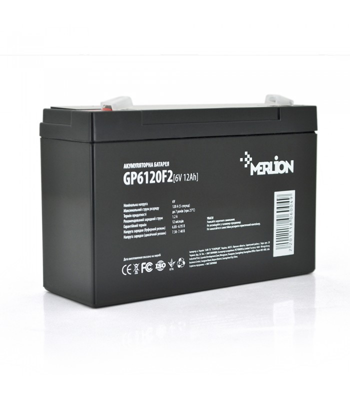 Акумуляторна батарея MERLION AGM GP6120F2 – правильна батарея для пристроїв з невеликим споживанням енергії. Міцний корпус, довгий термін служби, широкий спектр застосування - це акбі MERLION!