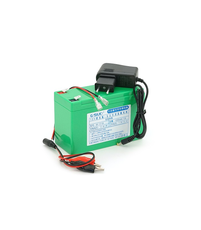 QiSuo QS1212A-литевая аккомуляторная батарея рабочего напряжения 12 Вольт на 12 Ампер +.зарядное устройство 12,6V/1A + крокодилы.Собранная на основе Li-ion 18650 элементов,эта батарея являеться отменным решением по питанию электромашин,бытовых инструментов,игрушек и поливальных техник.Размеры: 150X64,5X97,7 милиметров.Вес 964 грамм.Важным достоянием этой модели АКБ являеться увеличеный срок службы до 5 лет.Пластиковый корпус порадует высокой степенью устойчивости к горению,а также превосходной герметичностью.