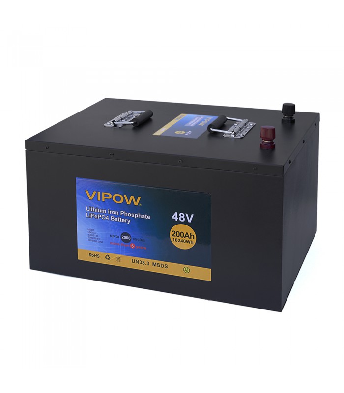 Vipow LiFePO4 51,2V 200Ah – аккумуляторная батарея LiFePO4 типа на базе ВМS платы 80A. При емкости 100Ah и рабочем напряжении 51,2 Вольта аккумулятор находит свое широкое применение, но наиболее часто используется для источников бесперебойного питания, для котлов. Гарантирован высокий ресурс циклов - более 2000. Высокий коэффициент безопасности.