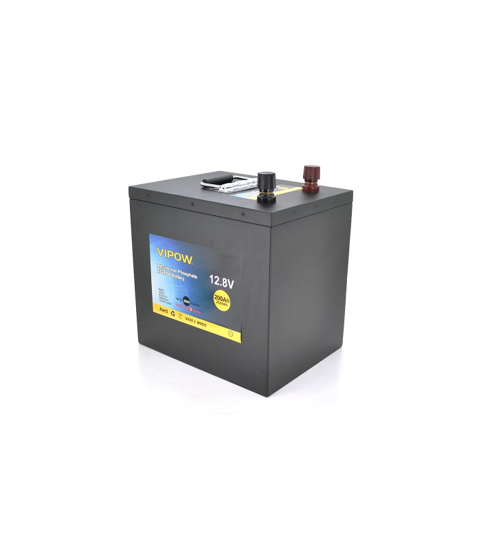 Vipow LiFePO4 12,8V 200Ah – аккумуляторная батарея LiFePO4 типа на базе ВМS платы 80A. По емкости 100Ah и рабочему напряжению 12,8 Вольта аккумулятор находит свое широкое применение, но чаще всего используется для источников бесперебойного питания, для котлов. Гарантированный высокий ресурс циклов — более 2000. Высокий коэффициент безопасности.
