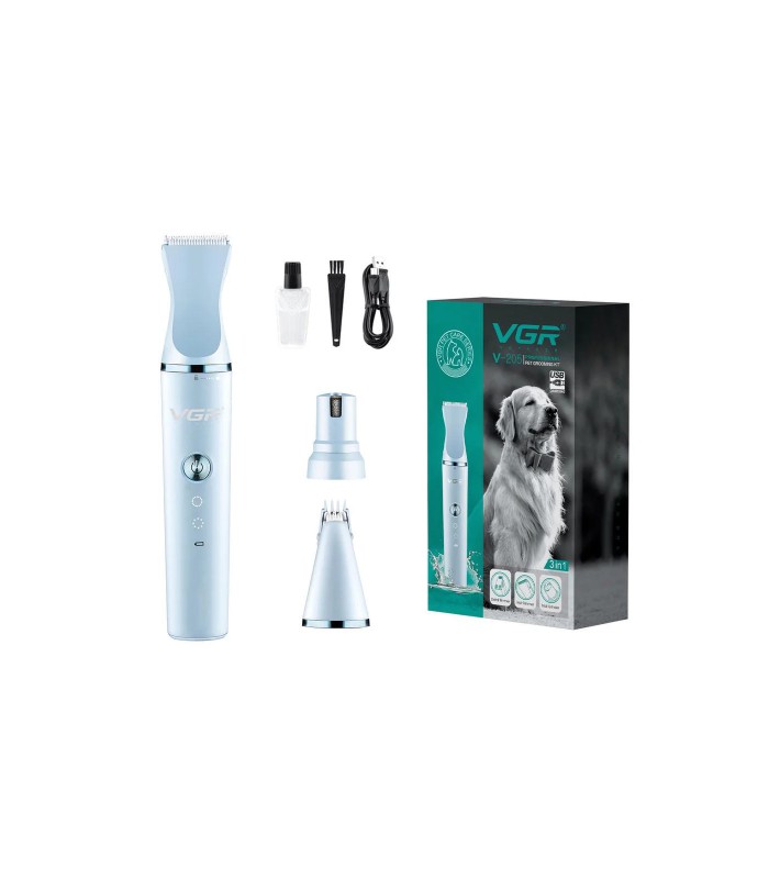Аккумуляторная машинка для стрижки животных VGR 3 в 1 V-205, 3 насадки, Box