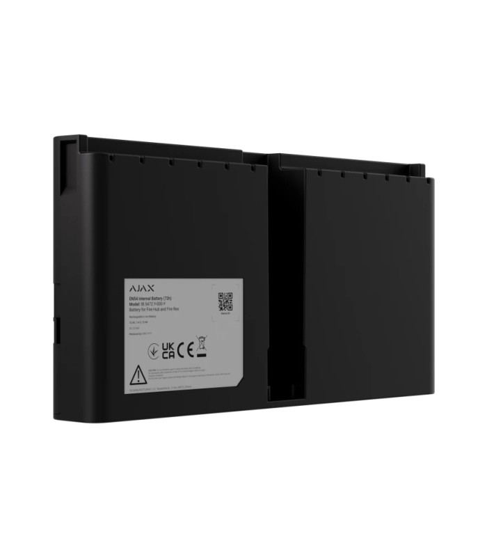 • EN54 Internal Battery (72h) – это литий-ионная батарея емкостью 10 А·ч, предназначенная для обеспечения автономной работы EN54 Fire Hub Jeweller или EN54 Fire ReX Jeweller до 72 часов. Соответствует стандартам EN 54 и совместима с пожарными системами Ajax.