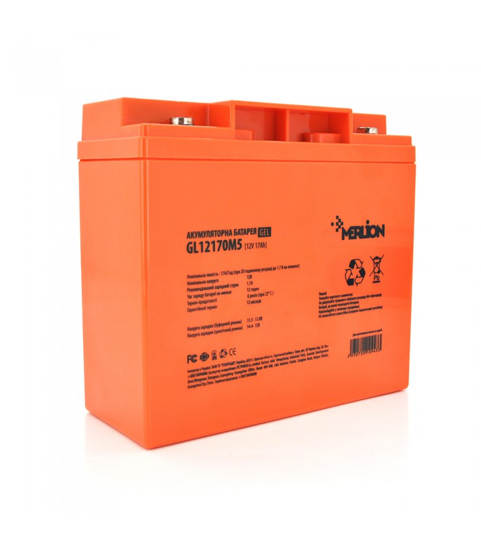 Акумуляторна батарея MERLION GL12170M5 12 V 17Ah ( 180 x 78 x 165 (168)), 4.77 kg, Orange, Q4