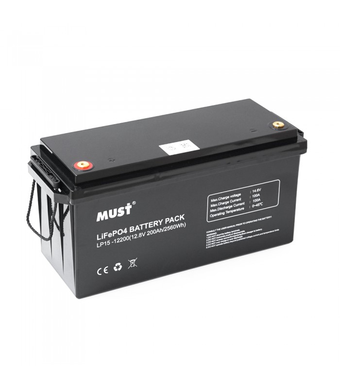 Акумуляторна батарея Must LiFePO4 LP15-12200 12,8V 200Ah, 2,56kWh, BMS100A@4S, 6000 cycles, 502x185x243, 23kg
