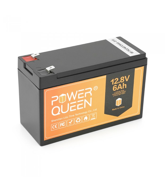 Акумуляторна батарея Power Queen LiFePO4 12.8V 6Ач 76Wh,BMS 6A F2, 151*65*94mm