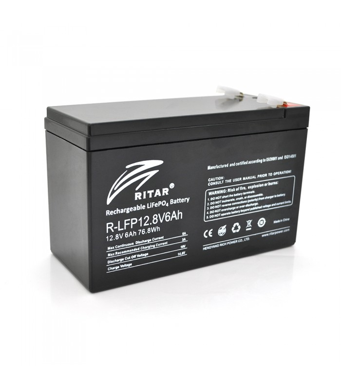 Аккумуляторная батарея Ritar LiFePO4 12,8V 6Ah (76,8Wh) BMS3A@4S ( 150 x 65 x 95 (100) Q10
