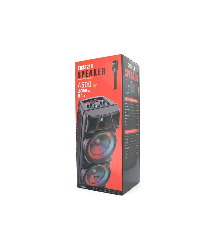 Мощная акустическая система с подсветкой ZQS8210, 2*20W, 1*Bluetooth микрофон, пульт, встроенный аккум 4500mAh, питание 220В, Bl