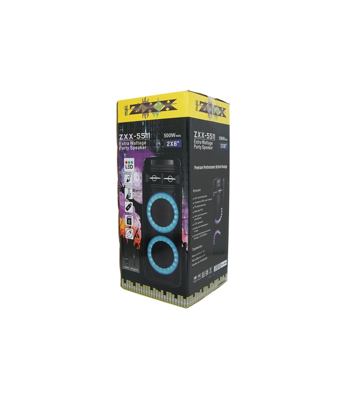 Мощная акустическая система с подсветкой ZXX-5511, 500W, Bluetooth микрофон, встроенный аккум 3000mAh, питание 220в, черного цвета, в комплекте с коробкой.