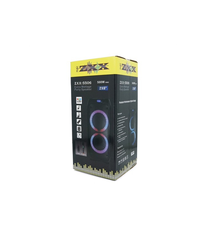 Мощная акустическая система с подсветкой ZXX-5506 предлагает возможность уверенно организовать вечеринки или мероприятия в любом месте благодаря своей высокой мощности и встроенному аккумулятору.