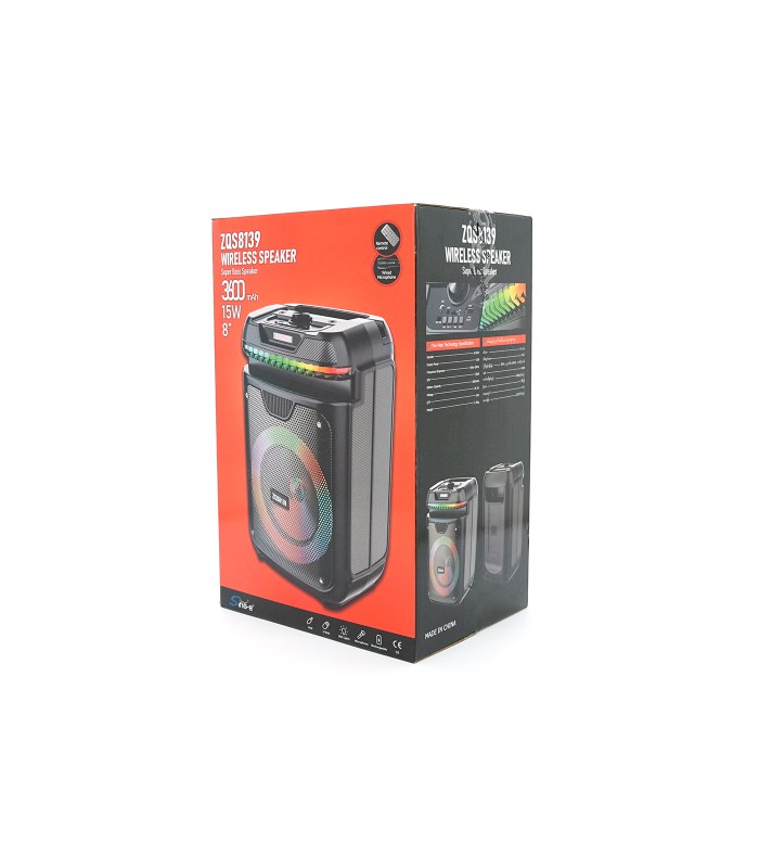 Акустическая система с подсветкой ZQS8139, 15W, встроенный аккум 3600mAh, питание от USB кабеля, Black, Box