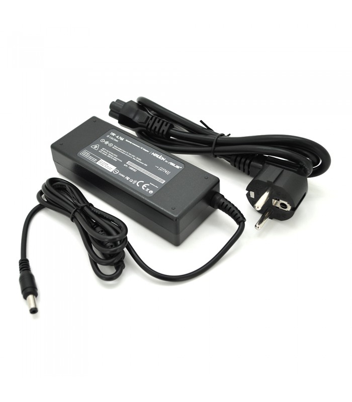 Блок питания оснащен штекером 5,5 x 2,5 мм, который подходит для большинства ноутбуков ASUS. К блоку питания также прилагается кабель питания с прямым разъемом, который можно использовать для подключения к сети.