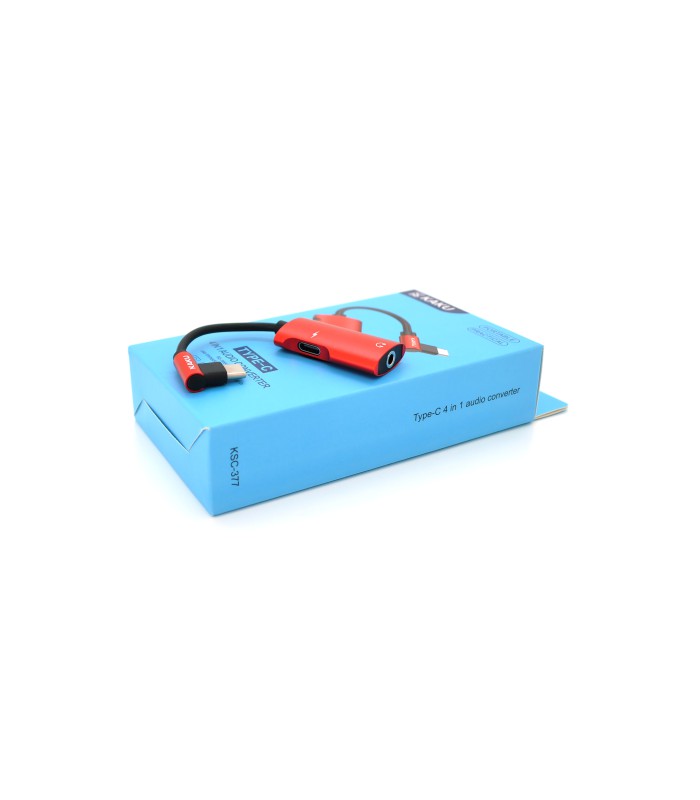 Аудиоконвертор iKAKU KSC-377 MAIQI 4 в 1 аудио конвертер Type-C, красного цвета, упаковка.