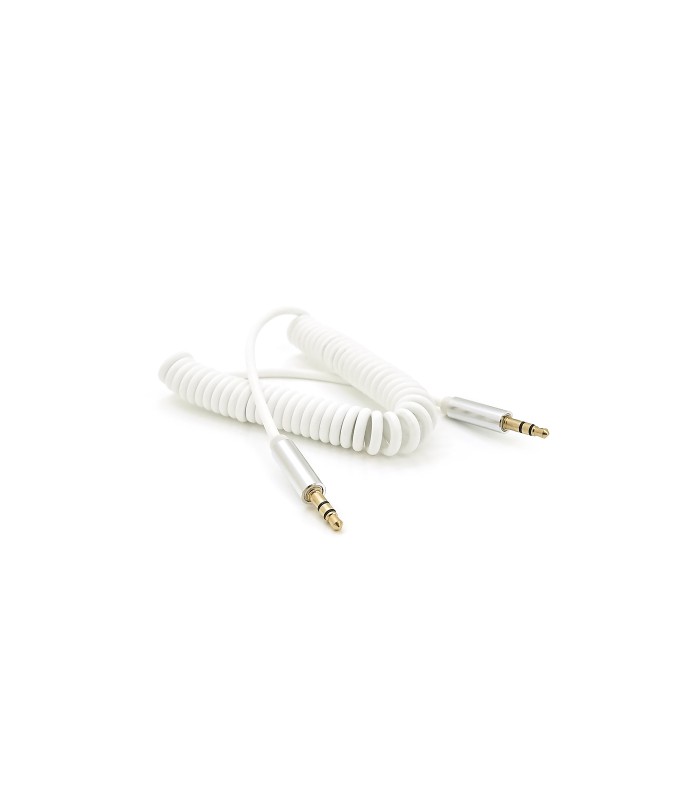 Кабель AUX Audio DC3.5 папа-папа 1.5м пружина, CCA Stereo Jack, (круглый) White cable, Box