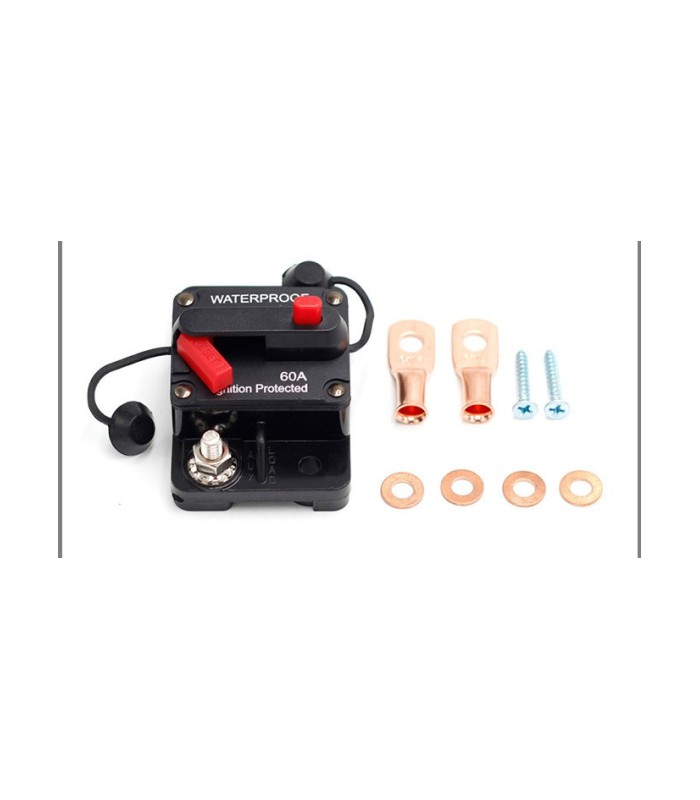Автоматический выключатель предохранитель однополюсный постоянного тока 12-48V, модель GG-CB5 Waterproof 60A, представляет собой надежное и эффективное устройство для защиты электрических цепей с постоянным напряжением от 12 до 48 вольт.