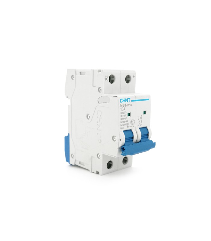 Двухполюсный автоматический выключатель серии NB1-63DC предназначен для защиты цепей постоянного тока от перегрузок и коротких замыканий. Устройство обеспечивает надежное отключение при возникновении аварийных ситуаций, защищая электрооборудование и проводку от повреждений. Монтаж на стандартную DIN-рейку позволяет легко интегрировать выключатель в распределительные щиты и шкафы управления.