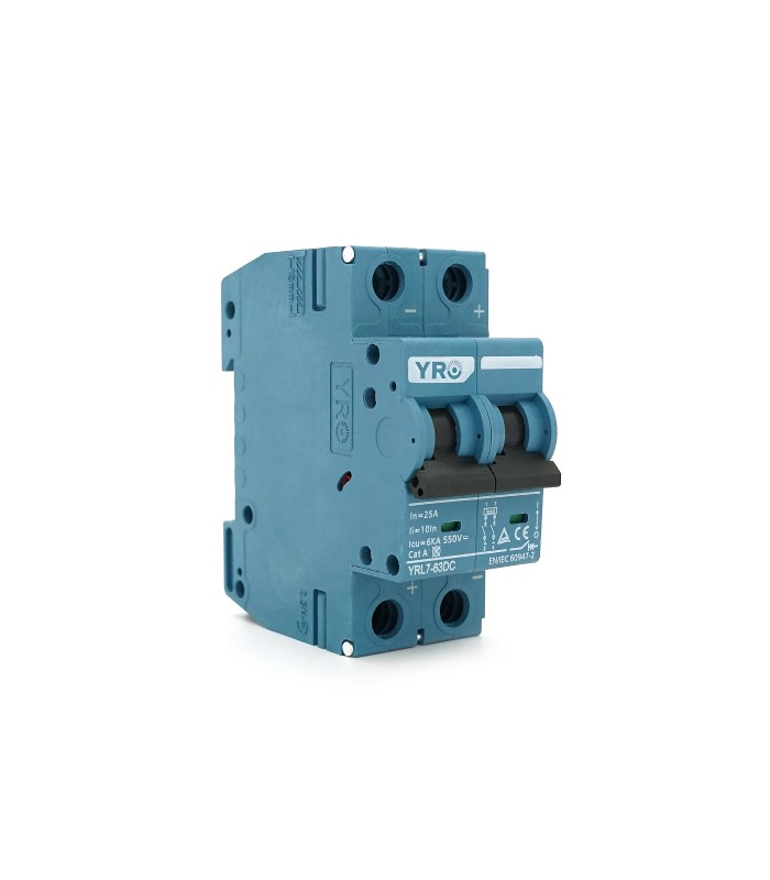 Автоматический выключатель постоянного тока YRO YRL7-63DC 2P 25A DC550V — это надежный аппарат защиты, предназначенный для эксплуатации в цепях постоянного тока. Модель обеспечивает комплексную защиту электрических линий и подключенного оборудования от токов короткого замыкания и продолжительных перегрузок.