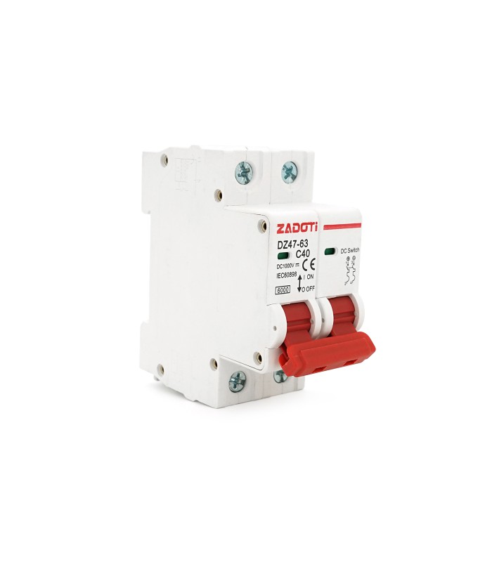 Автоматический выключатель постоянного тока ZADOTI DZ47-63C40 2P — это надежное и компактное решение для защиты электрических цепей постоянного тока от перегрузок и коротких замыканий. Данная модель специально разработана для работы в условиях высокого постоянного напряжения, что делает ее незаменимым компонентом в современных энергосистемах.