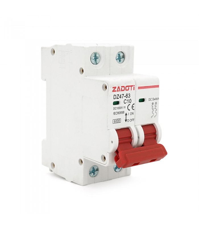 Автоматический выключатель постоянного тока ZADOTI DZ47-63C10 2P — это надежное и компактное решение для защиты электрических цепей постоянного тока от перегрузок и коротких замыканий. Данная модель специально разработана для работы в условиях высокого напряжения постоянного тока, что делает ее незаменимым компонентом в современных солнечных электростанциях, промышленных системах питания и телекоммуникационных установках.