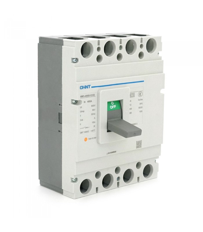 Автоматичний вимикач CHINT NM1-400S/4300 забезпечує надійне відключення при перевантаженнях та коротких замиканнях, запобігаючи пошкодженню обладнання та знижуючи ризик займання. Підходить для використання в мережах із високими експлуатаційними вимогами.