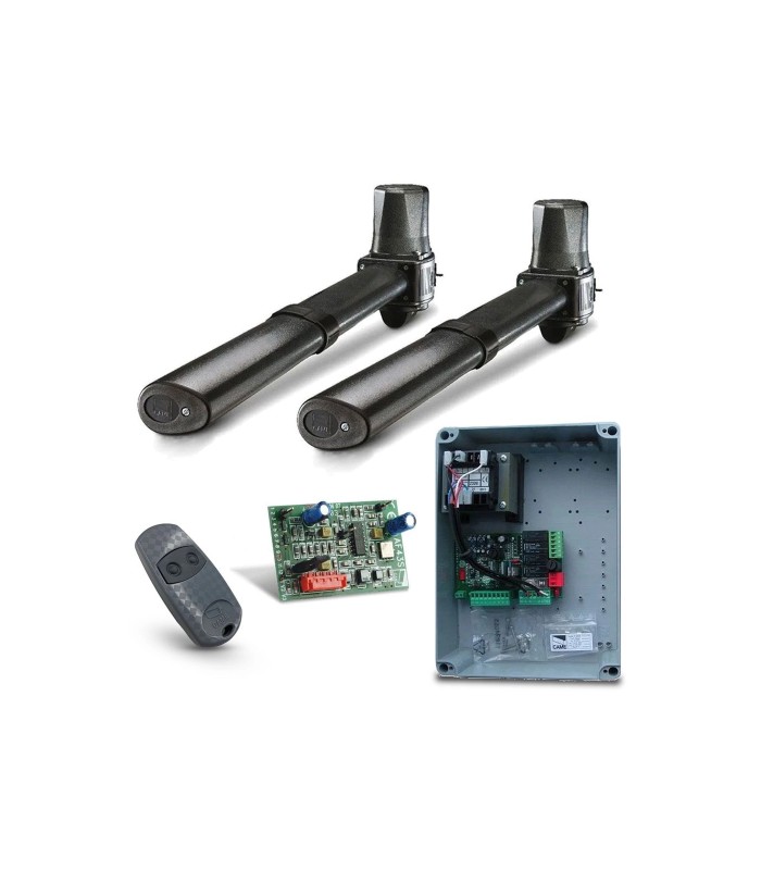 Came Krono 2 BASE — надёжный комплект автоматики для распашных ворот шириной створки до 3 метров и весом до 800 кг, с интенсивностью использования до 30%. Приводы с концевыми выключателями обеспечивают точное открытие и закрытие створок без необходимости центральных механических упоров. Подходит для частных домов, коттеджей и объектов, где ценятся долговечность, безопасность и комфорт.