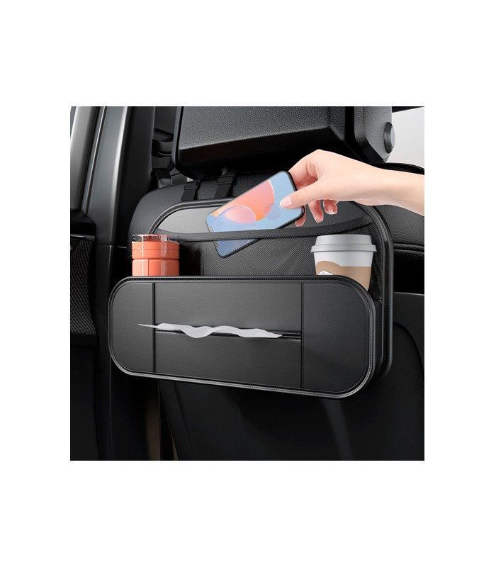 Автоорганайзер CABULE на спинку сиденья — это функциональное решение для организации пространства в салоне автомобиля. Изделие размером 36×8×24 см изготовлено из комбинации качественной искусственной кожи и металлического сплава, что обеспечивает прочность и эстетичный внешний вид. Органайзер крепится к подголовнику с помощью регулируемых ремней и предлагает четыре многофункциональных отделения для систематизации личных вещей.