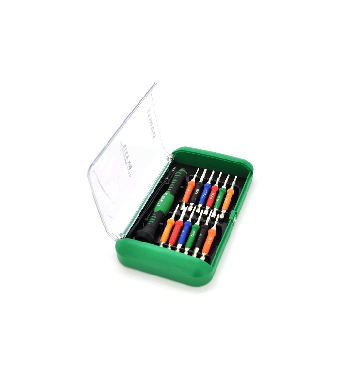 Набор инструментов BAKKU BK-6312 - состоит из 14 предметов, которые обеспечат качественные точные работы по ремонту гаджетов и устройств с очень маленькими болтиками. На каждый маленький болтик в наборе есть отвёртка, поэтому мастер на раз два справится с любыми задачами.