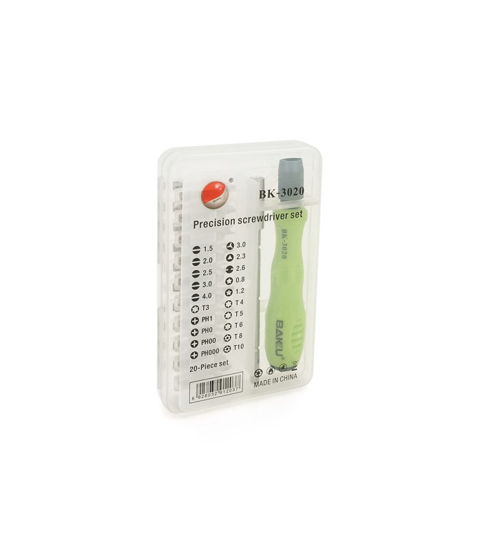 Набор отвёрток BAKKU BK-3020 - универсальная вещь в каждый дом или мастерскую! Одна рукоятка + 20 насадок, помогут открутить или закрутить необходимый шуруп, винт и другие элементы крепления. Все что может понадобиться для точных работ, ремонта мобильных и бытовых устройств, для домашнего использования - находится в данном наборе!