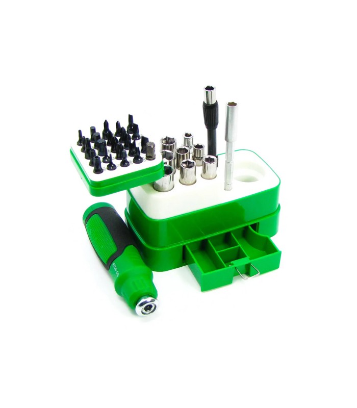 Набор инструментов BAKU BA-3038 - универсальная вещь в каждый дом или мастерскую! Двухсторонняя рукоятка + 33 насадок, помогут открутить или закрутить необходимый шуруп, винт и другие элементы крепления. Все что может понадобиться для точных работ, ремонта мобильных и бытовых устройств, для домашнего использования - находится в данном наборе!