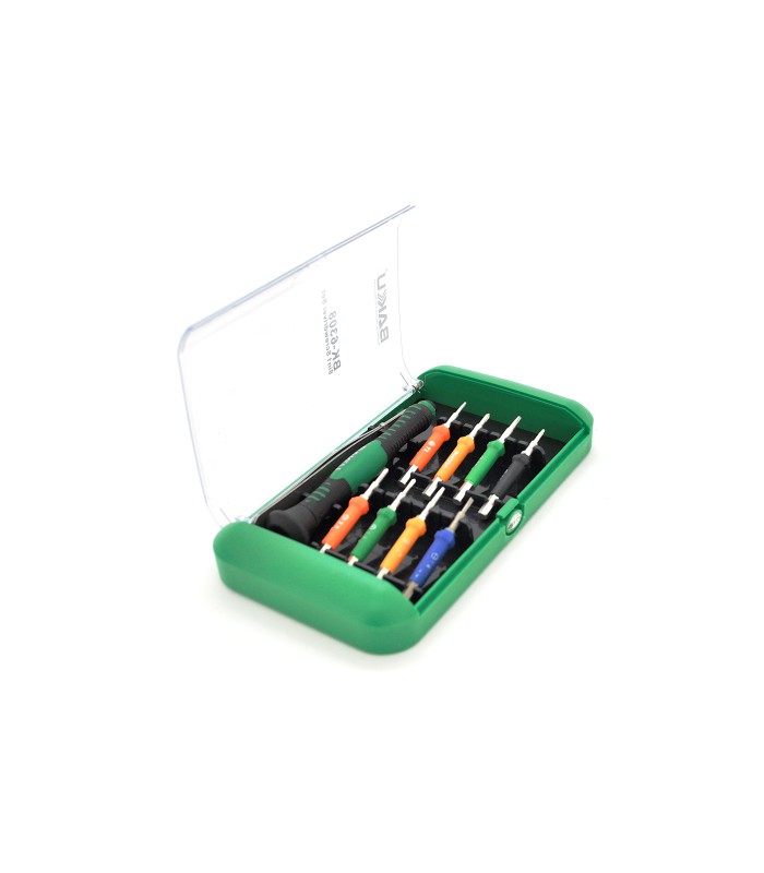 Набор инструментов BAKKU BK-6308 - для выполнения ремонтных работ смартфона, планшета и другой техники. Любой мастер по ремонту смартфонов, это как хирург на операции, как не крути, а без точных инструментов не обойтись. Для того что бы все прошло аккуратно и безопасно в наборе имеется ряд отвёрток которые помогут разобрать корпус различных устройств.