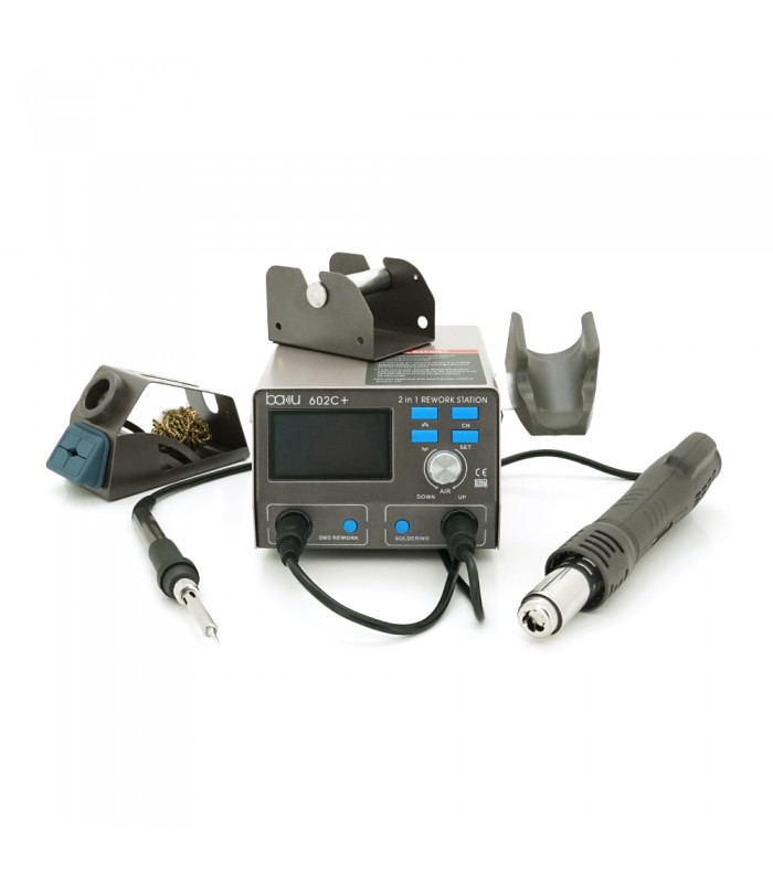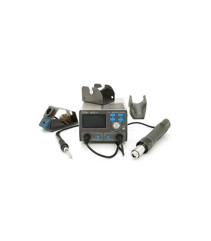 Паяльная станция термовоздушная BAKU BA-602C+ предназначена для профессионального использования. Она оснащена феном и паяльником, имеет цифровую индикацию и работает от переменного тока с напряжением 220 В.