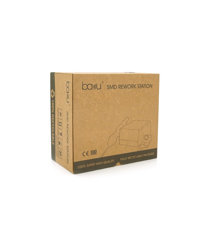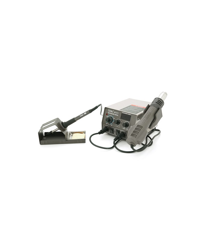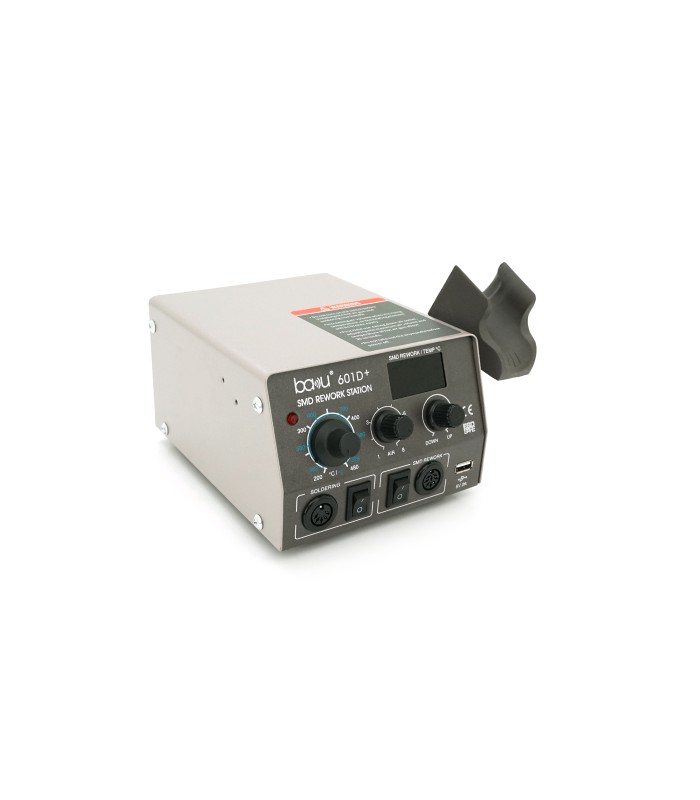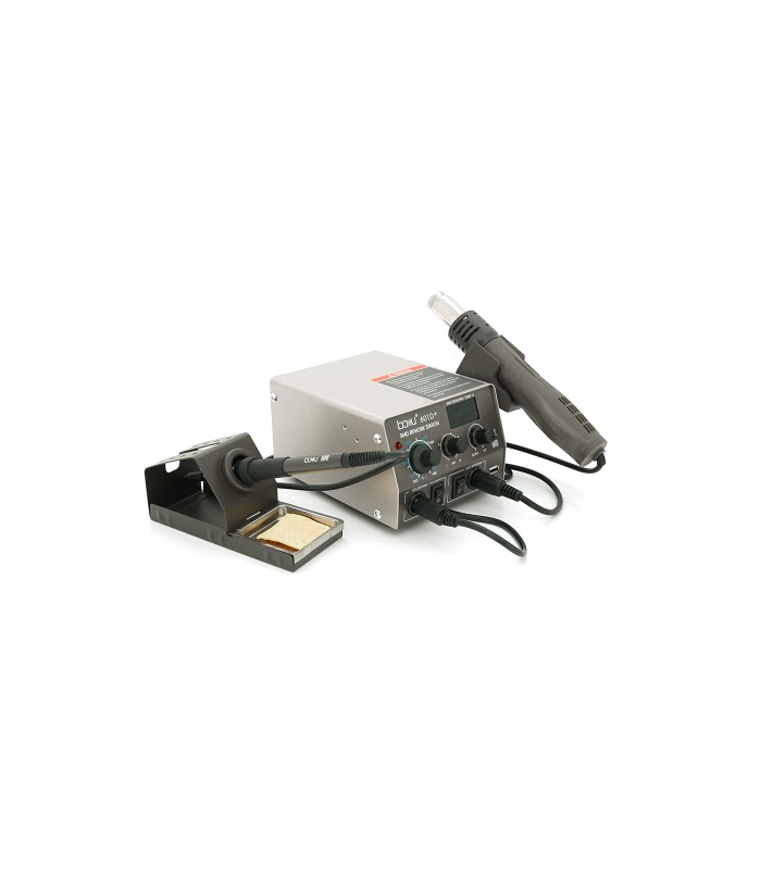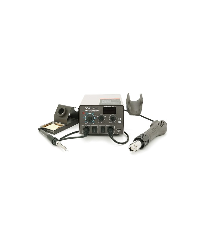Паяльная станция BAKKU BK-601D+ оборудована цифровой индикацией, а также феном и паяльником.