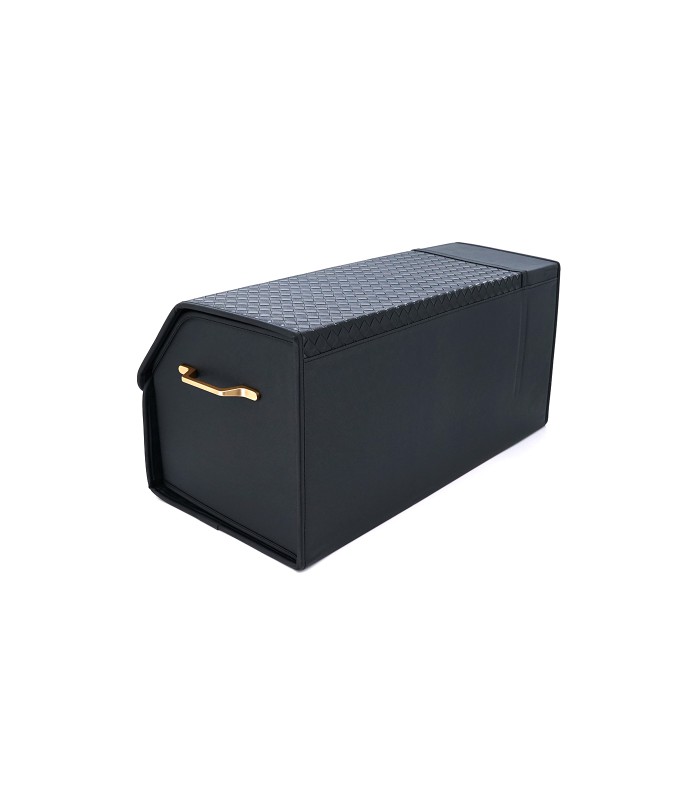 Складной кожаный автомобильный органайзер предназначен для удобного хранения и организации различных предметов в автомобиле. Он выполнен в черном цвете и имеет компактные размеры - 600*360*340 мм.