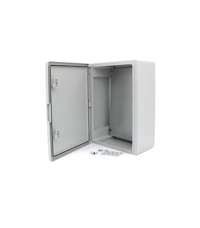 Прочный бокс из ABS-пластика с монтажной панелью 500х350х190, IP65, для защиты оборудования от влаги и пыли.
