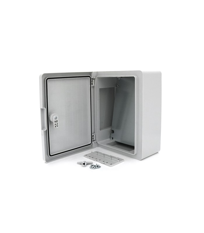 -комплектация: монтажная панель, ключ, набор для крепления (пластиковые кронштейны для крепления корпуса к стене 4 шт.)