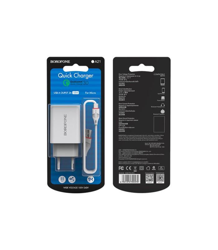 Набор BOROFONE BA21A обеспечивает стабильную подачу тока, защищая устройство от скачков напряжения. Удобная длина кабеля позволяет комфортно использовать гаджет во время зарядки. Компактный адаптер легко помещается в сумку или дорожную розетку.