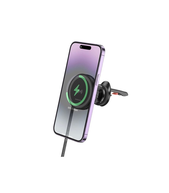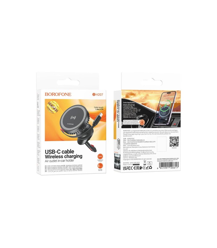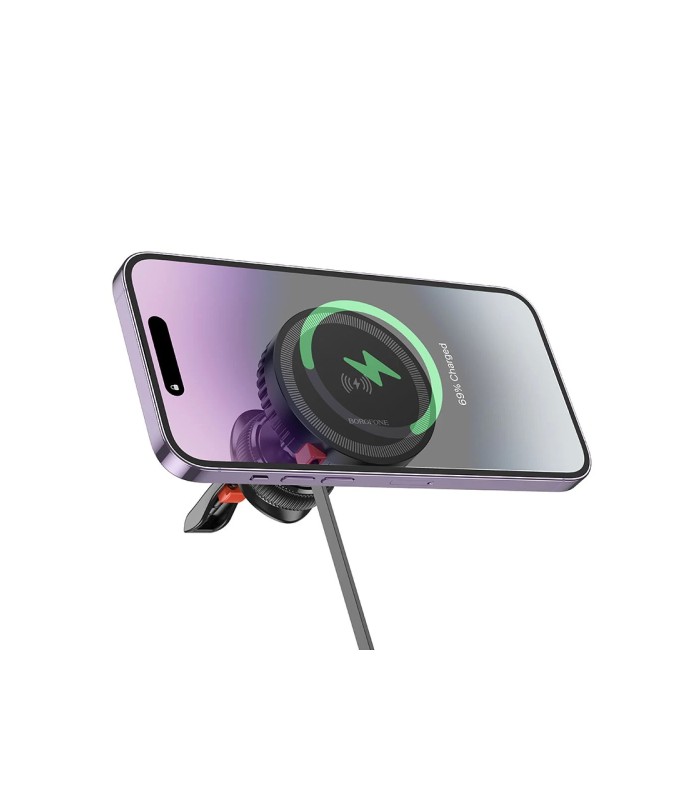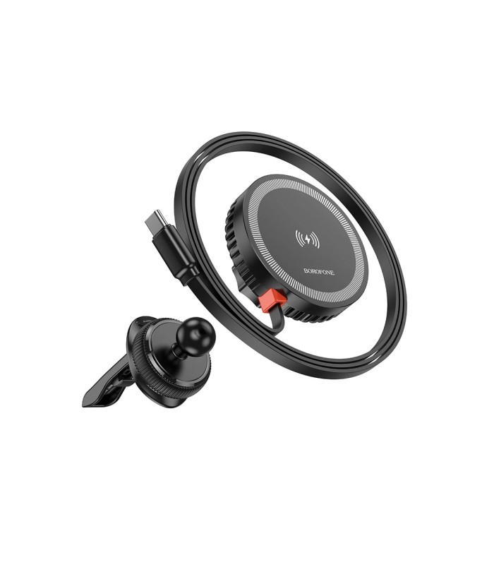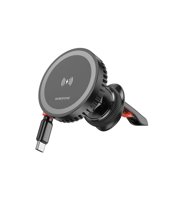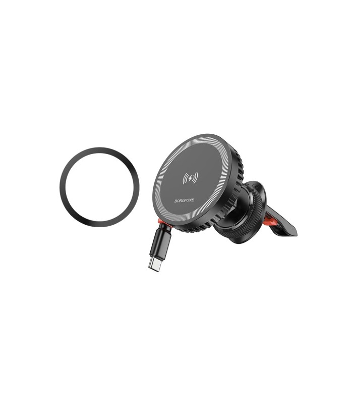Автодержатель BOROFONE BH207+ Wireless Charging 15W, крепление на торпеду, магнит, Black, Box