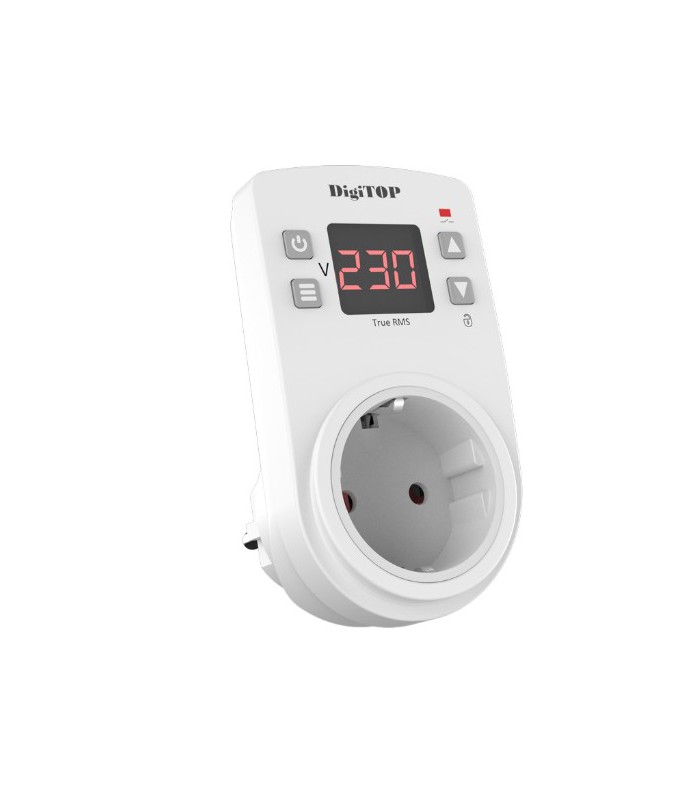 Устройство постоянно анализирует напряжение в сети и в случае выхода напряжения за установленные пределы происходит отключение подключенных приборов.