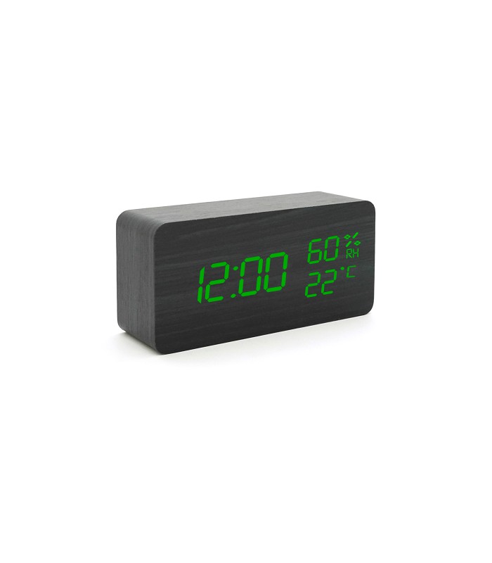 Электронные часы VST-862S Wooden (Black) - стильные электронные часы с деревянным корпусом в черном цвете. Они оснащены датчиком температуры и влажности, имеют функцию будильника и питание от кабеля USB. Также они освещаются зеленым светом.